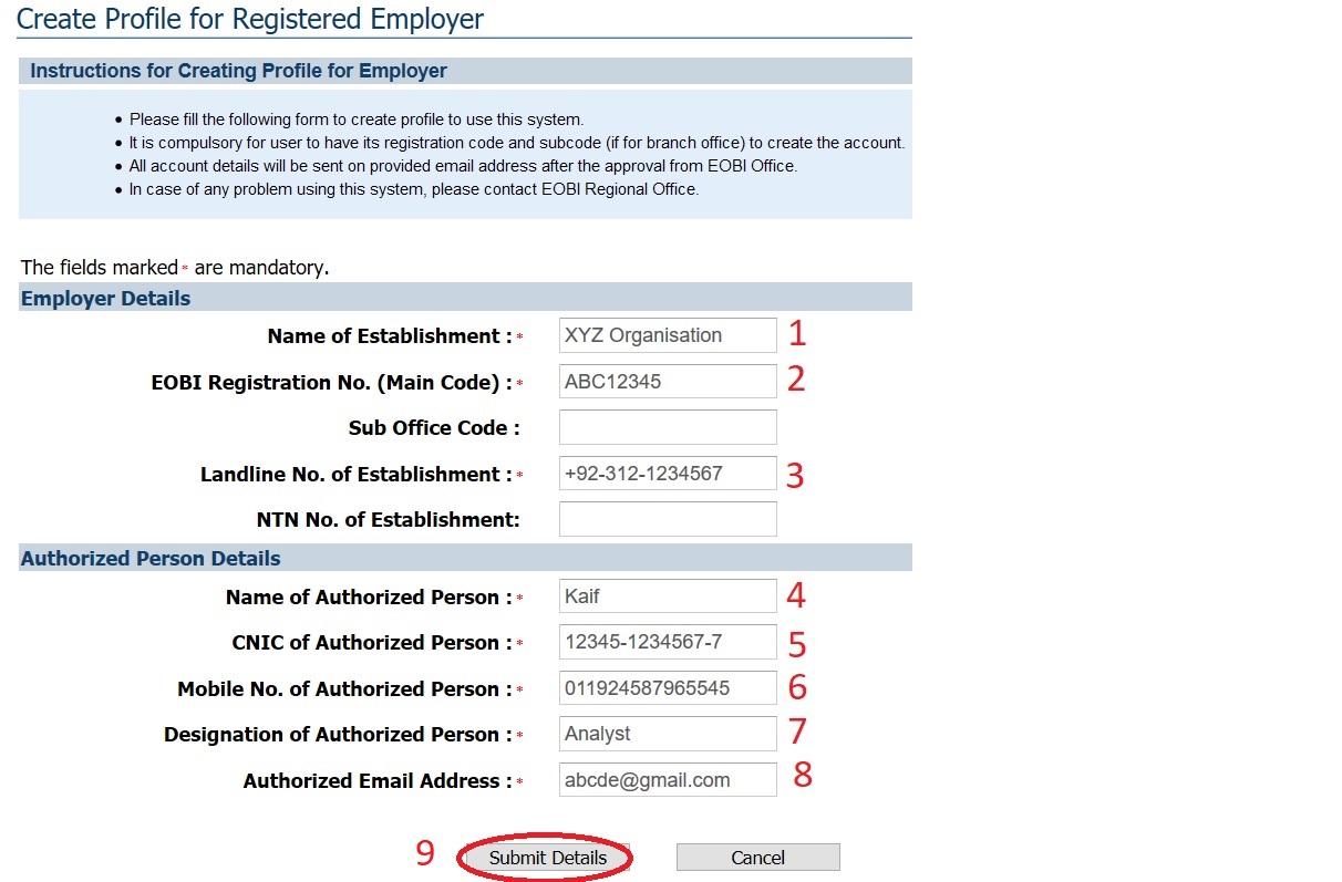 ** All account details will be sent on provided email address after the approval from EOBI Office.