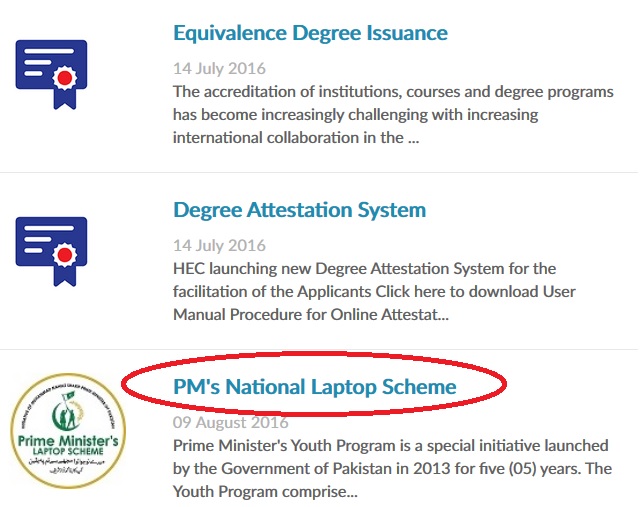 HEC Prime Minister’s National Laptop Scheme 2014 Pakistan