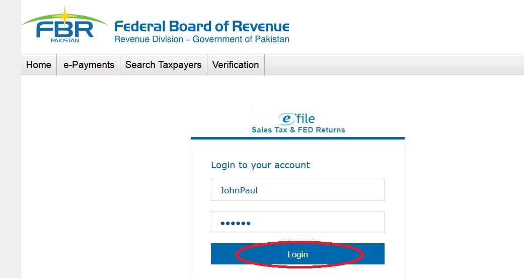 1. Login to the system i.e. https://web.archive.org/web/20210814091146/https://e.fbr.gov.pk/ by using the issued user id & password