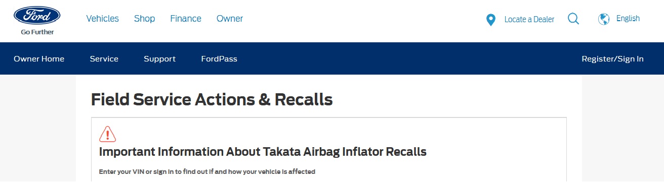 Ford Motor Company Takata Airbag Inflator Recalls : How To Check