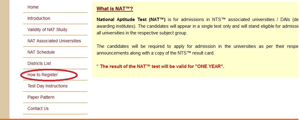 ** National Aptitude Test (NAT) is for admissions in NTS™ associated universities / DAIs (degree awarding institutes). The candidates will appear in a single test only and will stand eligible for admission to all universities in the respective subject group.