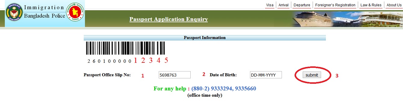 To Get Passport Information Online, Enter Passport Office Slip Number and Select your Date of Birth Below Link.