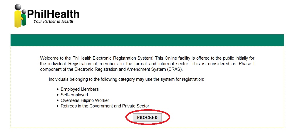 Welcome to the PhilHealth Electronic Registration System! This Online facility is offered to the public initially for the individual Registration of members in the formal and informal sector.