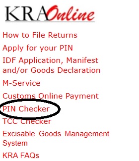Step 2 : Then scroll the pages down and click the PIN Checker link under KRA Online.