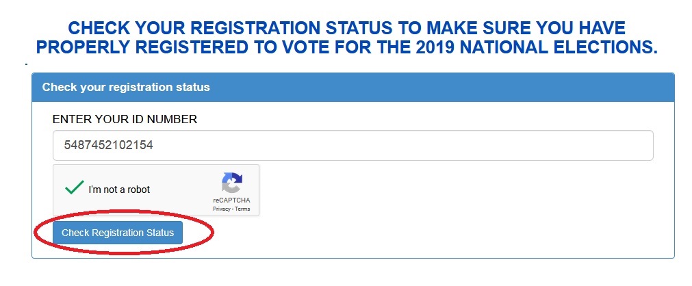 ** Check Your Registration Status To Make Sure You Have Properly Registered To Vote For The 2019 National Elections.