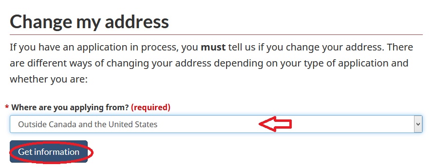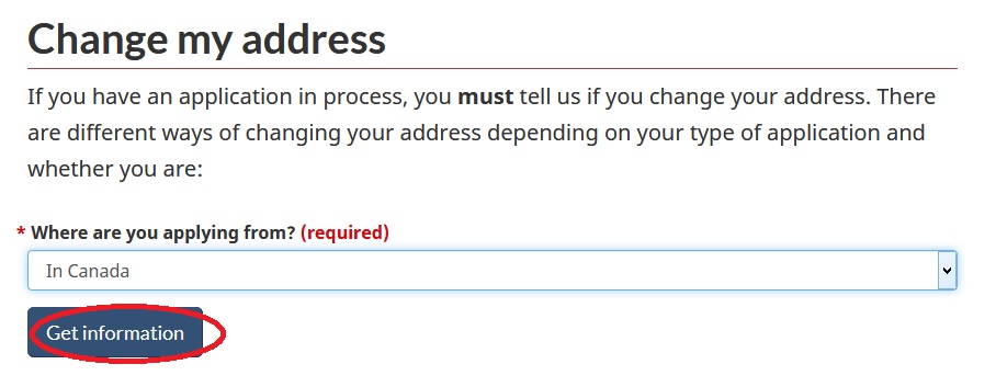 ** If you submitted an immigration application, you must contact the Canadian visa office serving your region to change your address.