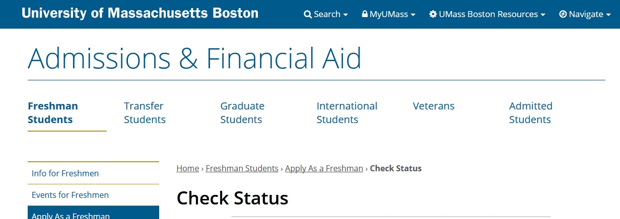 ** Once you access the Check Application Status system, and successfully create a new password, this password is used for ALL applications at any campus (UMass Boston, UMass Dartmouth, and UMass Lowell).