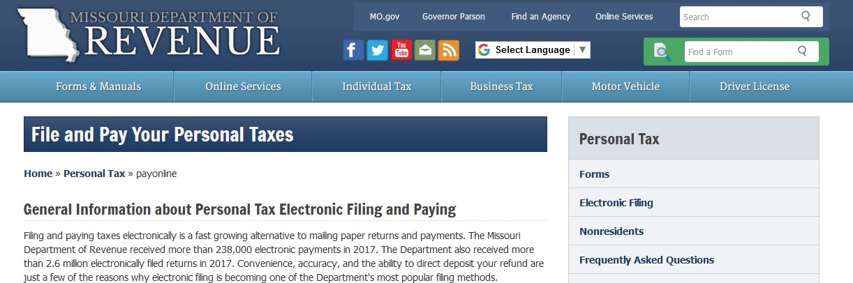 ** The Department has entered into an agreement with certain software providers to offer free online filing services to qualified Missouri taxpayers.