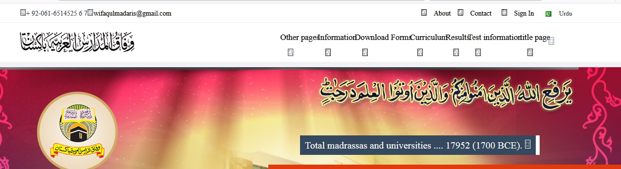 Wafaq ul Madaris Al Arabia Pakistan was established in the year 1957 and he control the all over the Pakistan students to take exams and announced the results.