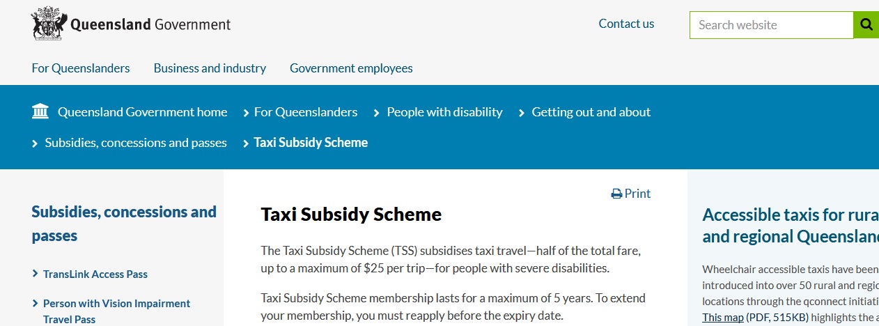 Website : https://www.qld.gov.au/disability/out-and-about/taxi-subsidy/