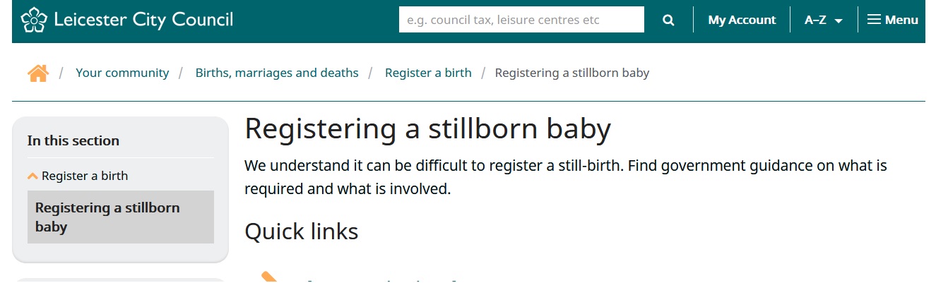 leicester.gov.uk Registering A Stillborn Baby England : City Council