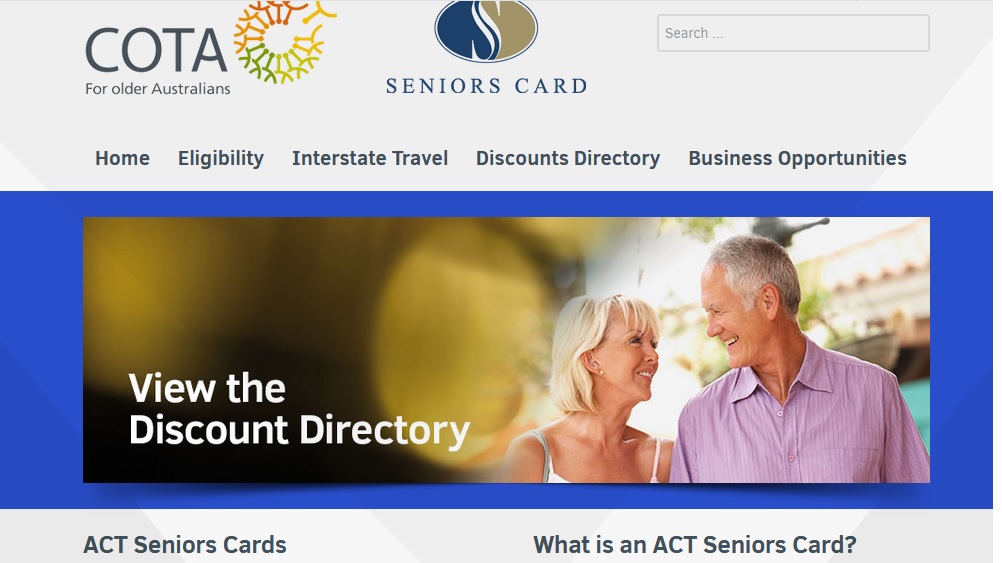 ** This is the official ACT Seniors Card website with information about obtaining a card, finding participating businesses, special offers and discounts, and information for businesses about how to participate.