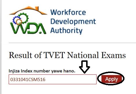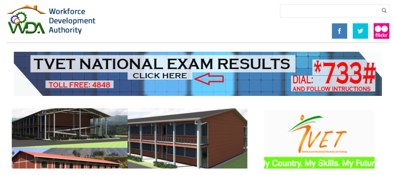 Go to the official website of WDA Rwanda. Click TVET National Exam Results which will be displayed in home page.