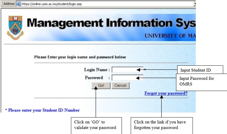 Login Here : https://online.uom.ac.mu/StudentOnline/App_WebAccount/Login.aspx