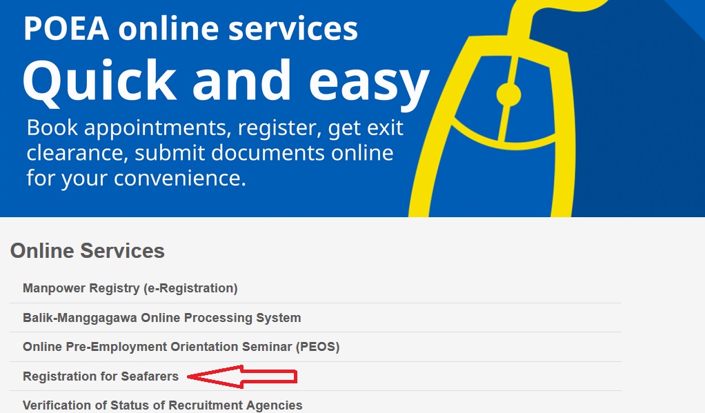 With this system in place, the seafarer can access the system at the comfort of their homes or anywhere in the world without the hassle of personal appearance at the POEA Office/s. This Online registration is free of charge.