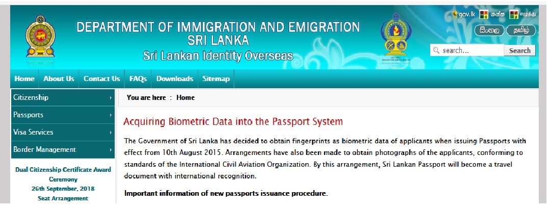 immigration.gov.lk Biometric Passport System Sri Lanka : Department of Immigration and Emigration