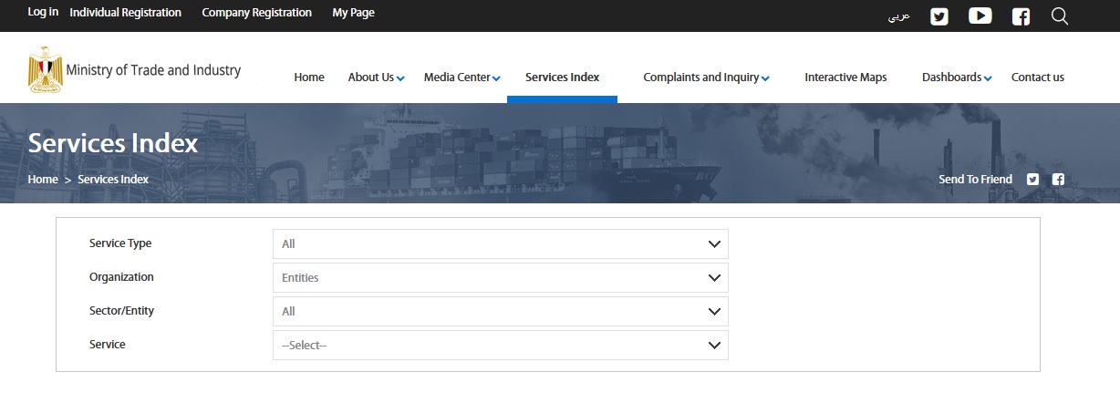Website : http://www.mti.gov.eg/english/EServices/Pages/default.aspx?SectorId=4
