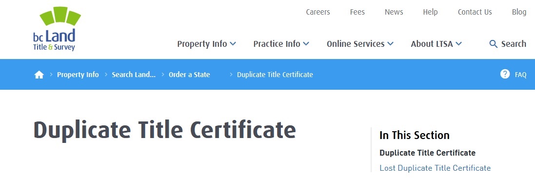 ltsa.ca Apply for Duplicate Title Certificate Canada : Land Title & Survey
