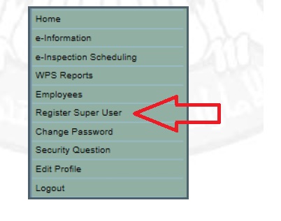 ** On logging into the system, choose ‘Register Super User’ from the left menu.