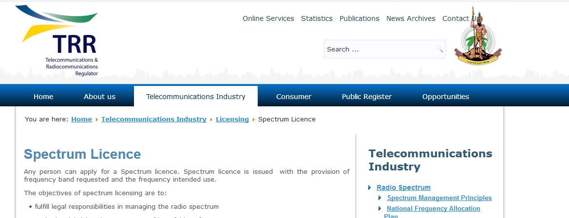 As part of its functions under Section 7(2)(e) of the Telecommunications and Radiocommunications Regulation Act, TRR is responsible to allocate, assign and manage the radio spectrum.