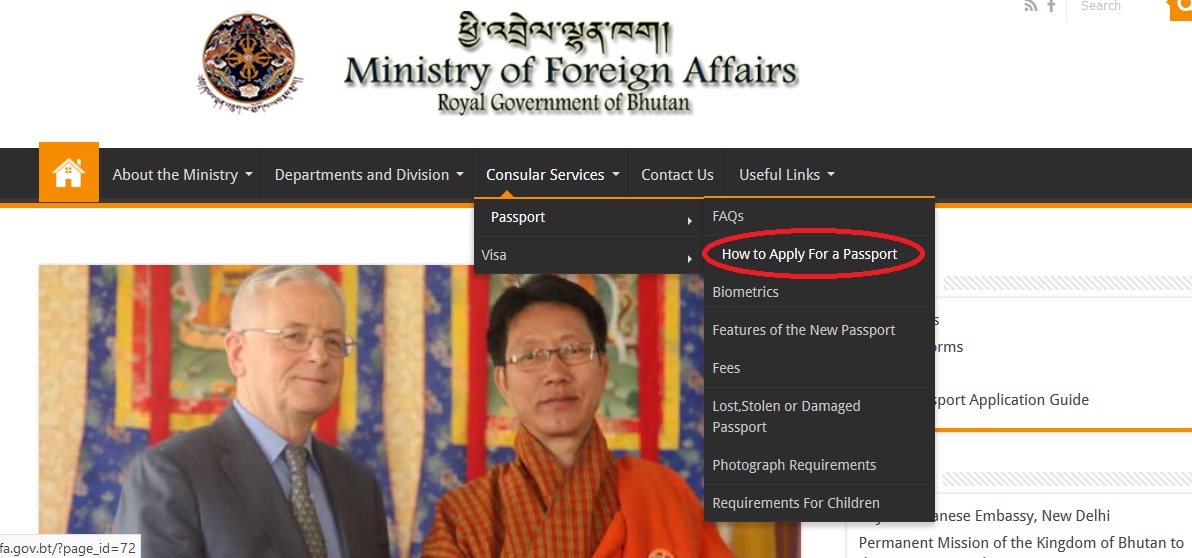MFA Machine Readable Passport Application Bhutan