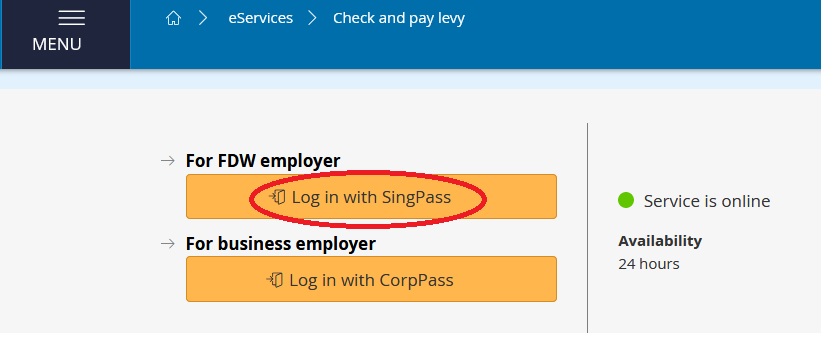 ** Choose Check and pay levy, and Work Permit transactions for domestic helpers and confinement nannies as your company’s eServices.