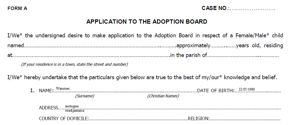 ** Application for an Adoption Order – that is the completion of an adoption in Jamaica.