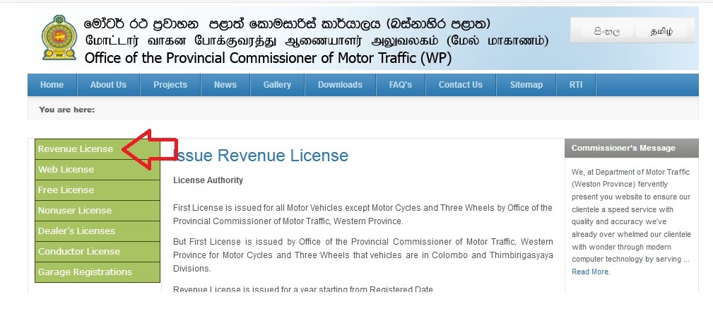 Motor Traffic WP Online Vehicle Revenue Licence Service Sri Lanka