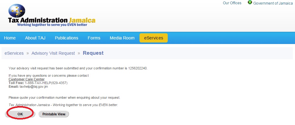 In order to make such a request, the taxpayer can visit the TAJ Website and log in to the TAJ Web Portal, select the “Advisory Visit Request” hyperlink