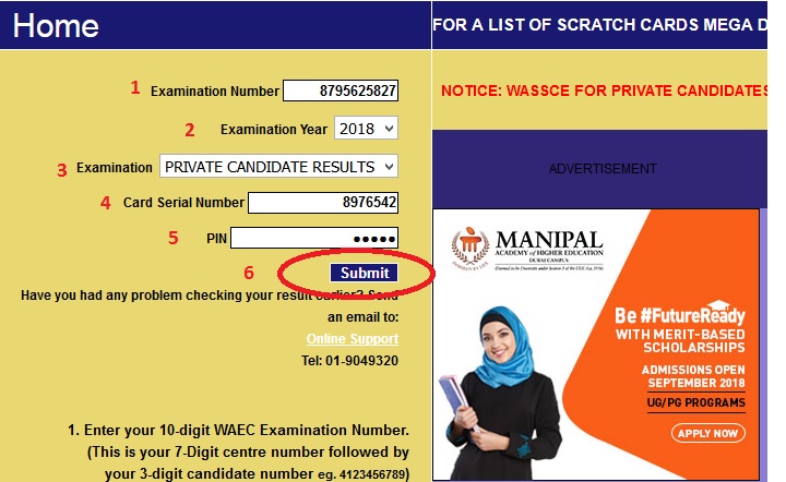 WAEC*ExamNo*PIN*ExamYear
