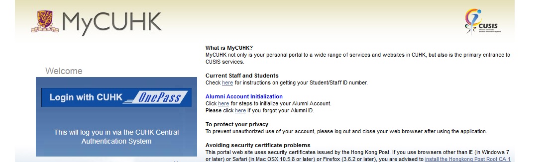 Website : http://www.cuhk.edu.hk/cusis/index.htm