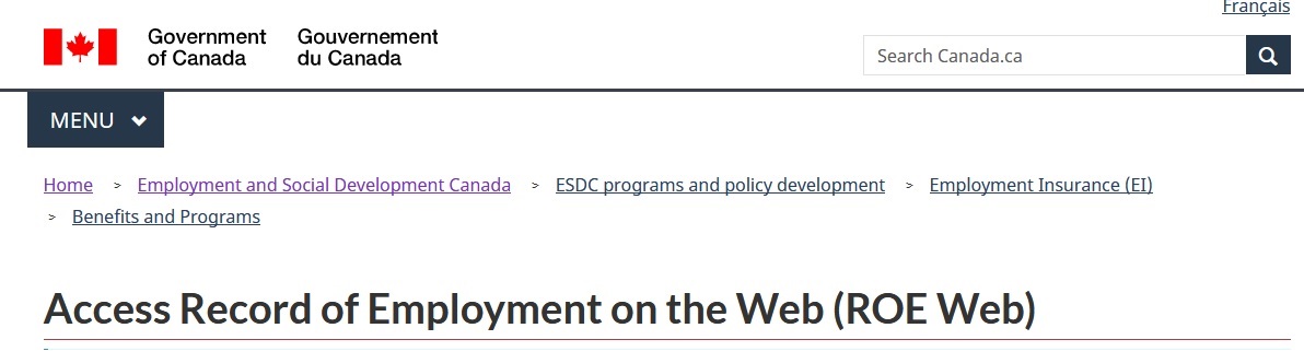 Record of Employment on the Web (ROE Web) :