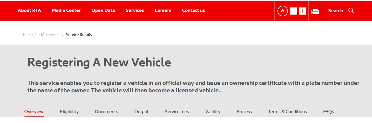 rta.ae How to Register New Vehicle United Arab Emirates : Roads & Transport Authority