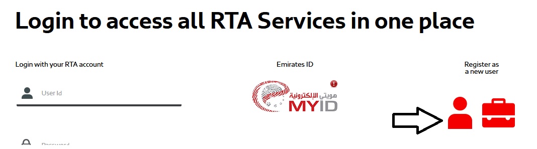 Step 1: Press the ‘Login’ option on top left corner at the RTA Portal home page,