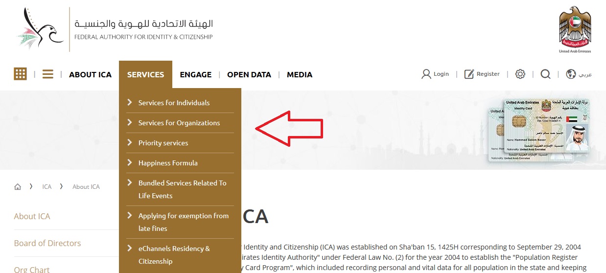 The Federal Decree-Law No. 2 of 2004 stipulated the establishment of ICA as a federal government authority with legal personality and independent budget. It undertakes registering population data and issuing Emirates ID cards. The Federal Decree-Law No. 3 of 2017 amended the aforementioned Federal Decree-law.