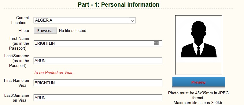 Step 3 : Then Fill up and submit the Online Visa Application Form