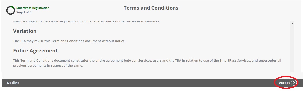 In order to create your SmartPass account, and access certain SmartPass and linked UAE Government e-services, you are required to register on SmartPass to create a user name and password.