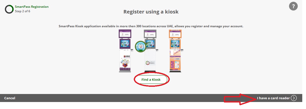SmartPass Kiosk application available in more then 300 locations across UAE, allows you register and manage your account.