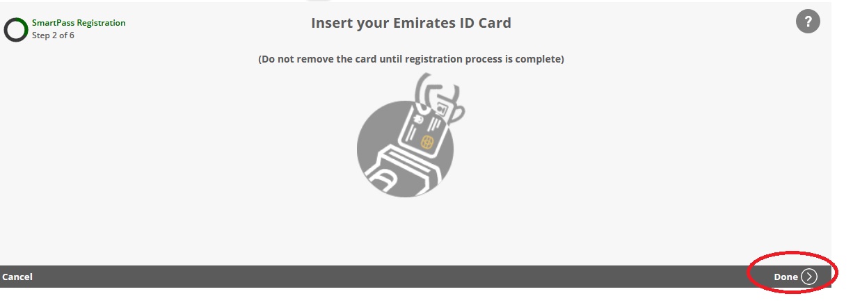 Step 3 : Insert your Emirates ID Card – Click on done button