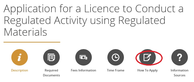 1. Download the form: Application for a Licence to Conduct a Regulated Activity using Regulated Materials