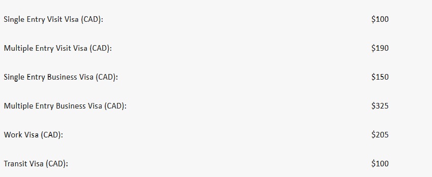 The above mentioned visa fee is for Canadian Passport holders only. Nationals of other countries should contact the Mission for fee schedule.