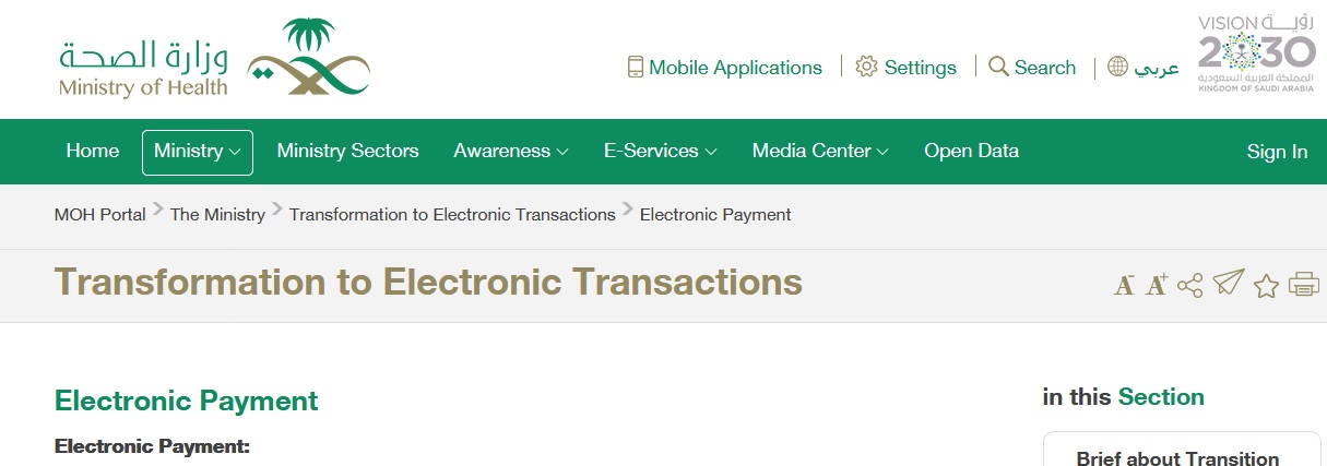 Website : https://www.moh.gov.sa/en/Ministry/eTransactions/Pages/Payment.aspx