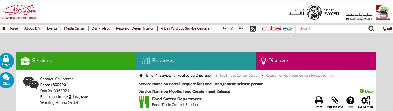 dm.gov.ae Request for Food Consignment Release Permit : Dubai Municipality