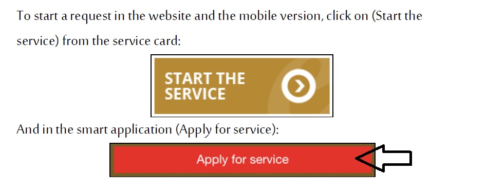 ** To start a request in the website and the mobile version, click on (Start the service) from the service card: