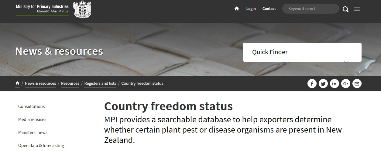 MPI provides a searchable database to help exporters determine whether certain plant pest or disease organisms are present in New Zealand.