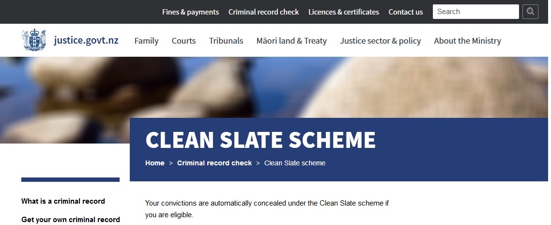 Website : https://www.justice.govt.nz/criminal-records/clean-slate/