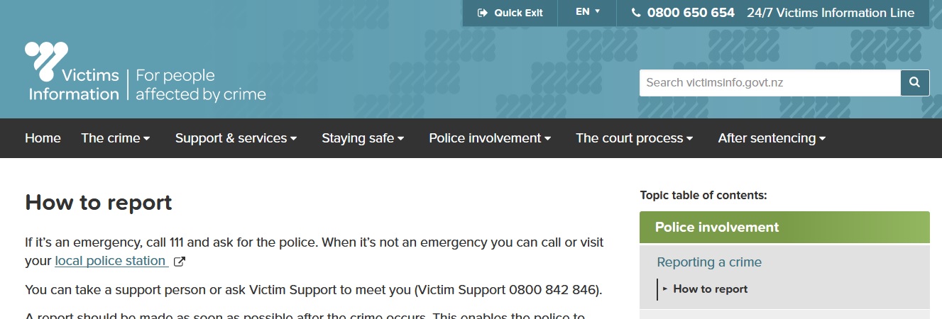 victimsinfo.govt.nz How to Report a Crime New Zealand : Victims Information
