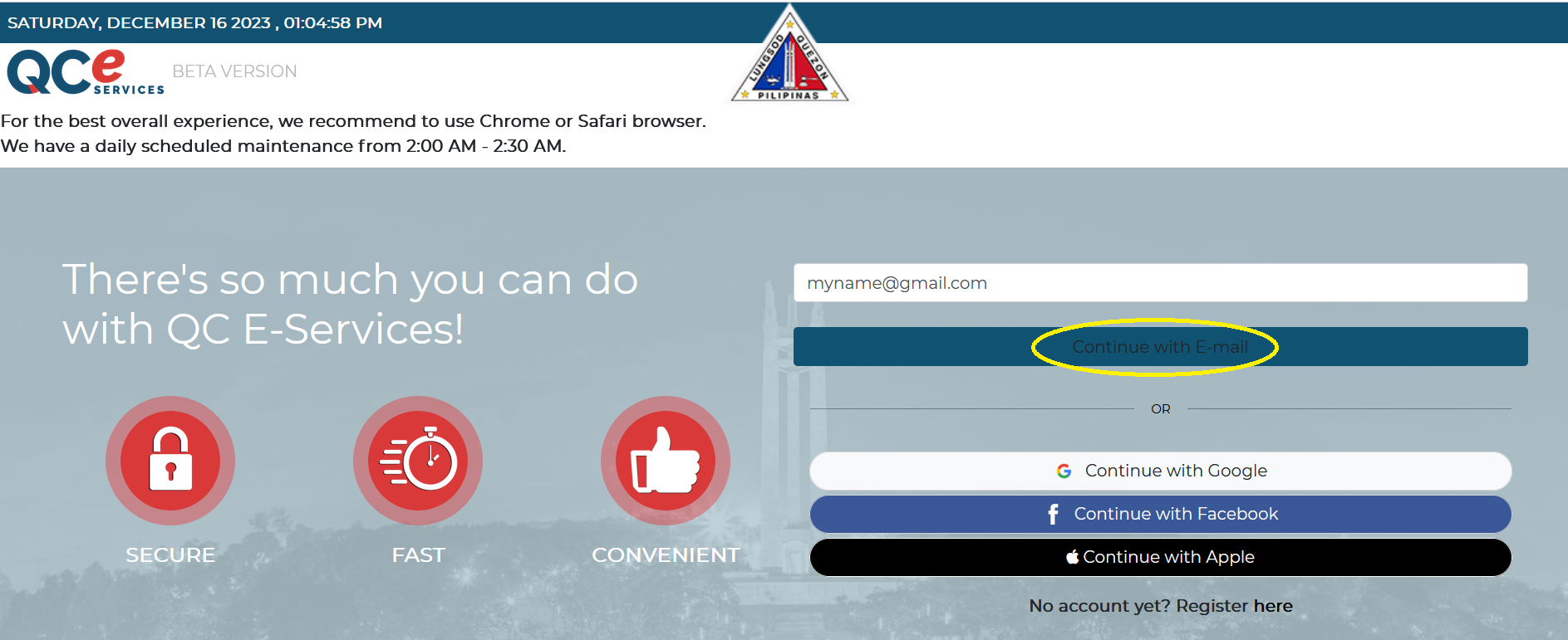 1. Register or Log-in to QC eServices: Access the platform through https://quezoncity.gov.ph/