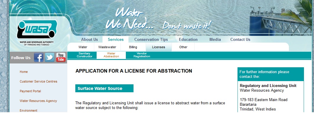 Website : https://www.wasa.gov.tt/WASA_Services_licenses_2.html