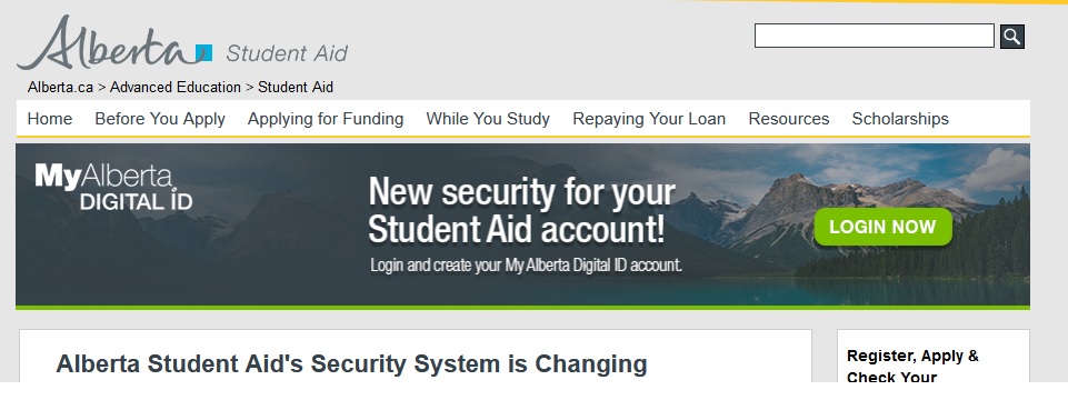 Website : http://studentaid.alberta.ca/
